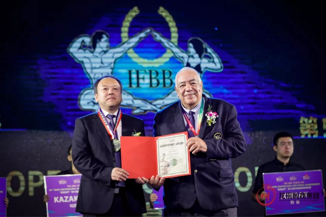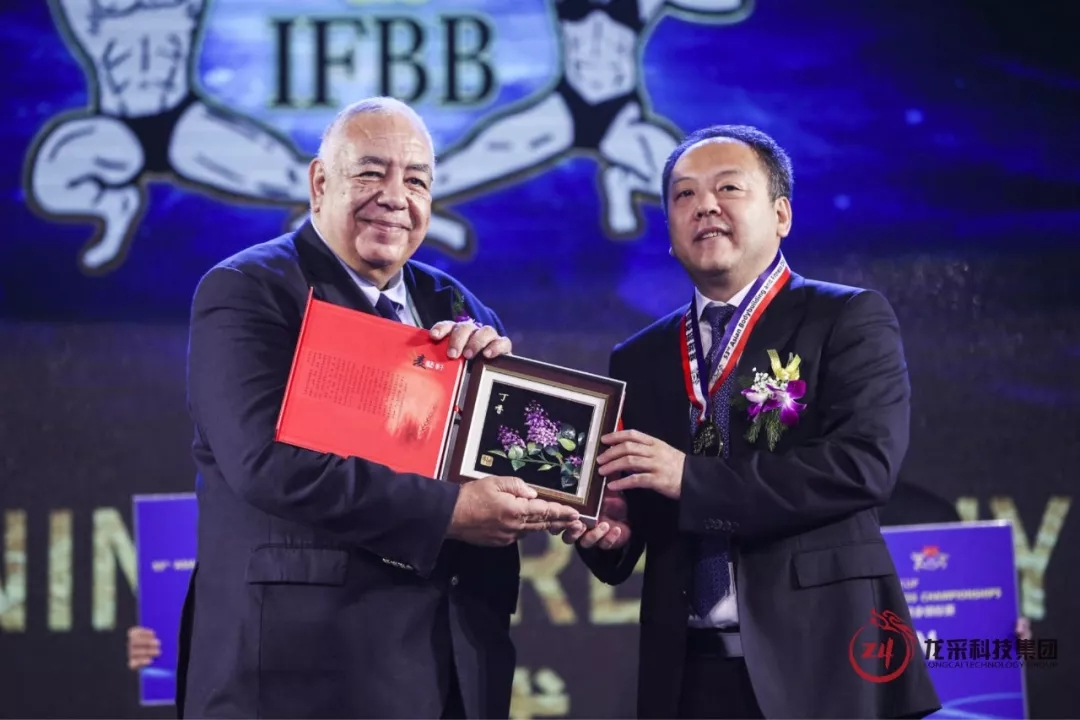 國際健美健身聯合會副主席阿黛爾為哈爾濱市人民政府市長孫喆,哈爾濱市體育局黨組書記、局長趙竹帛,中國健美協會副主席、龍采科技集團董事長楊春波頒發榮譽獎牌及證書,感謝各方對賽事的大力支持。